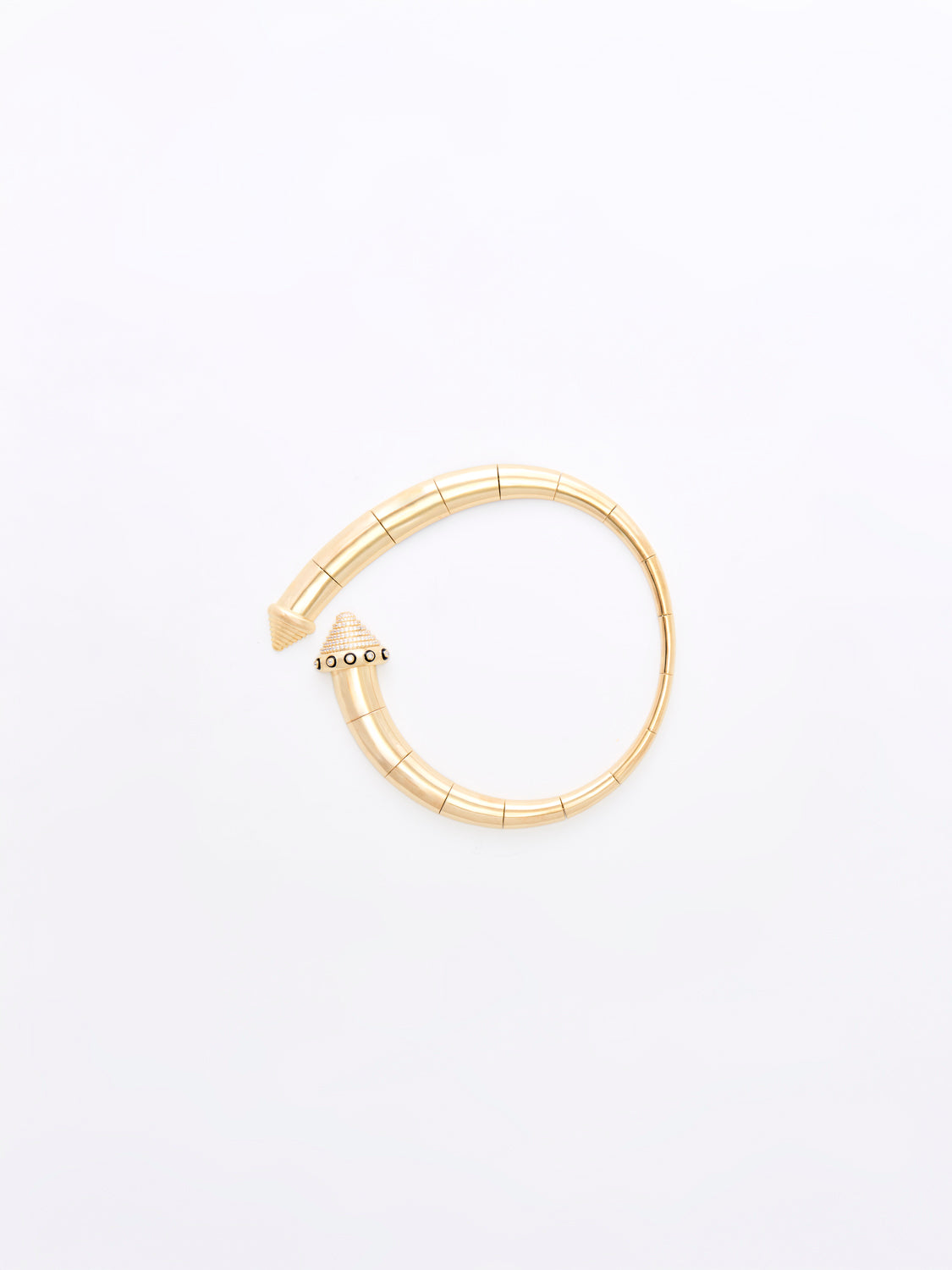 BOND sculpted necklace in 18k gold with a touch od diamonds encircled black enamel.