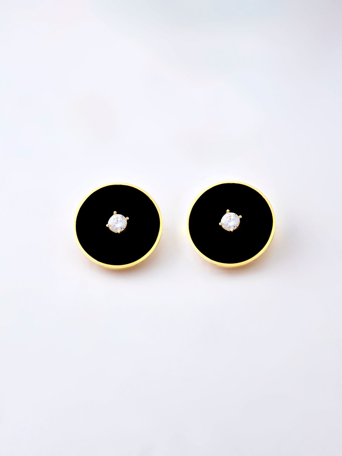 A pair of NOOR earrings, 18k gold framed in black enamel, with diamond at its center.