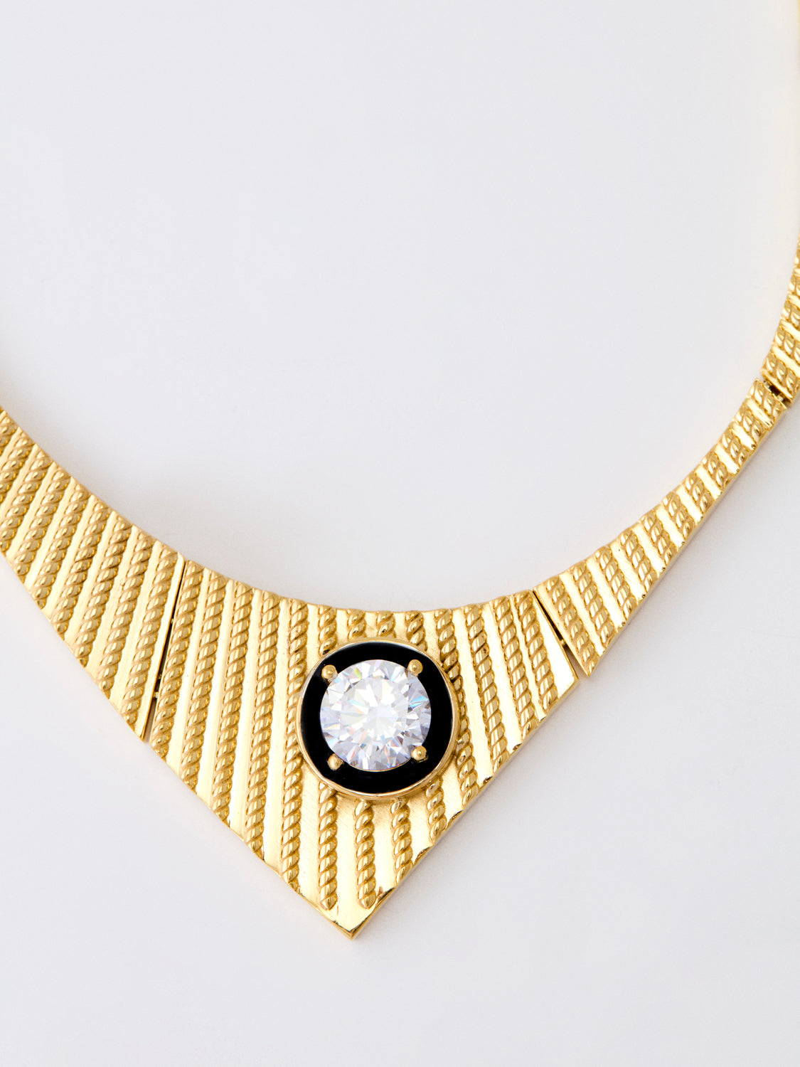 ONE necklace, handcrafted in 18k gold, featuring 5,3 ct diamond and complemented with black enamel.